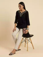 Black Pashmina Work Short Kurti