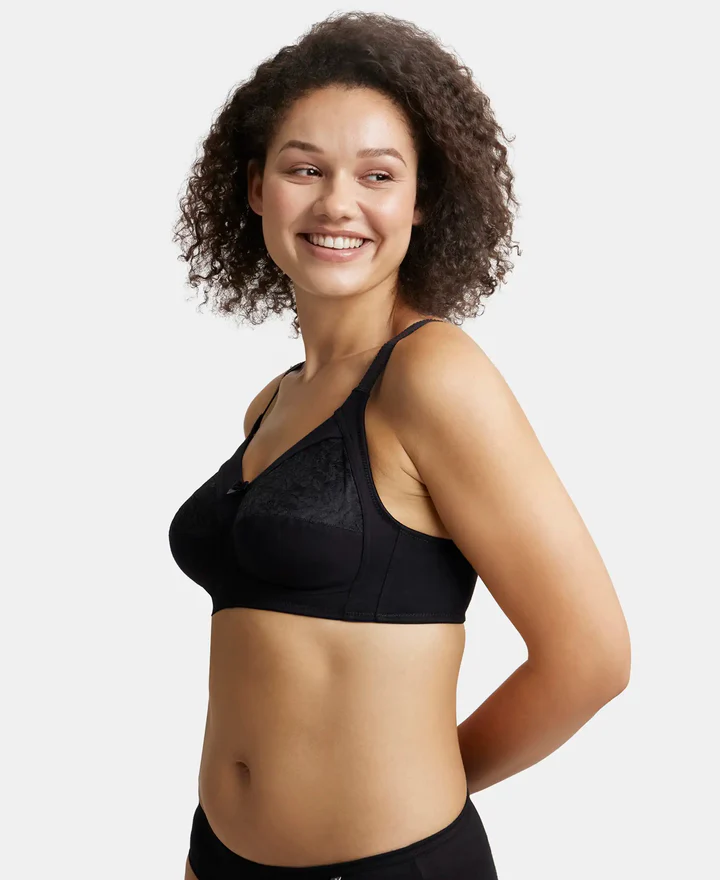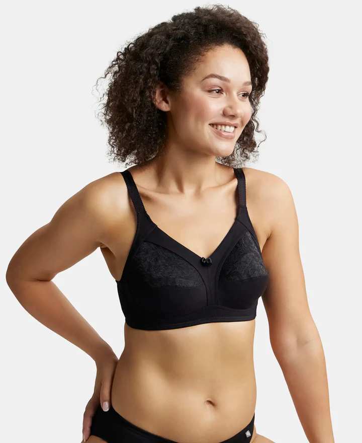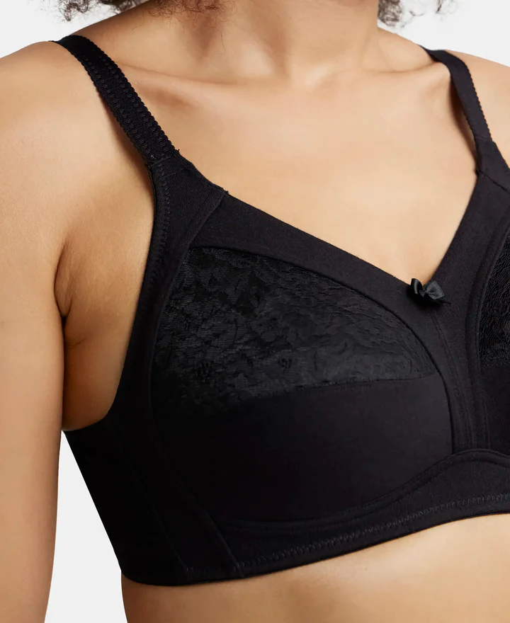 Black Wire free Non Padded Super Combed Full Coverage Plus Size Bra with Lace Styling