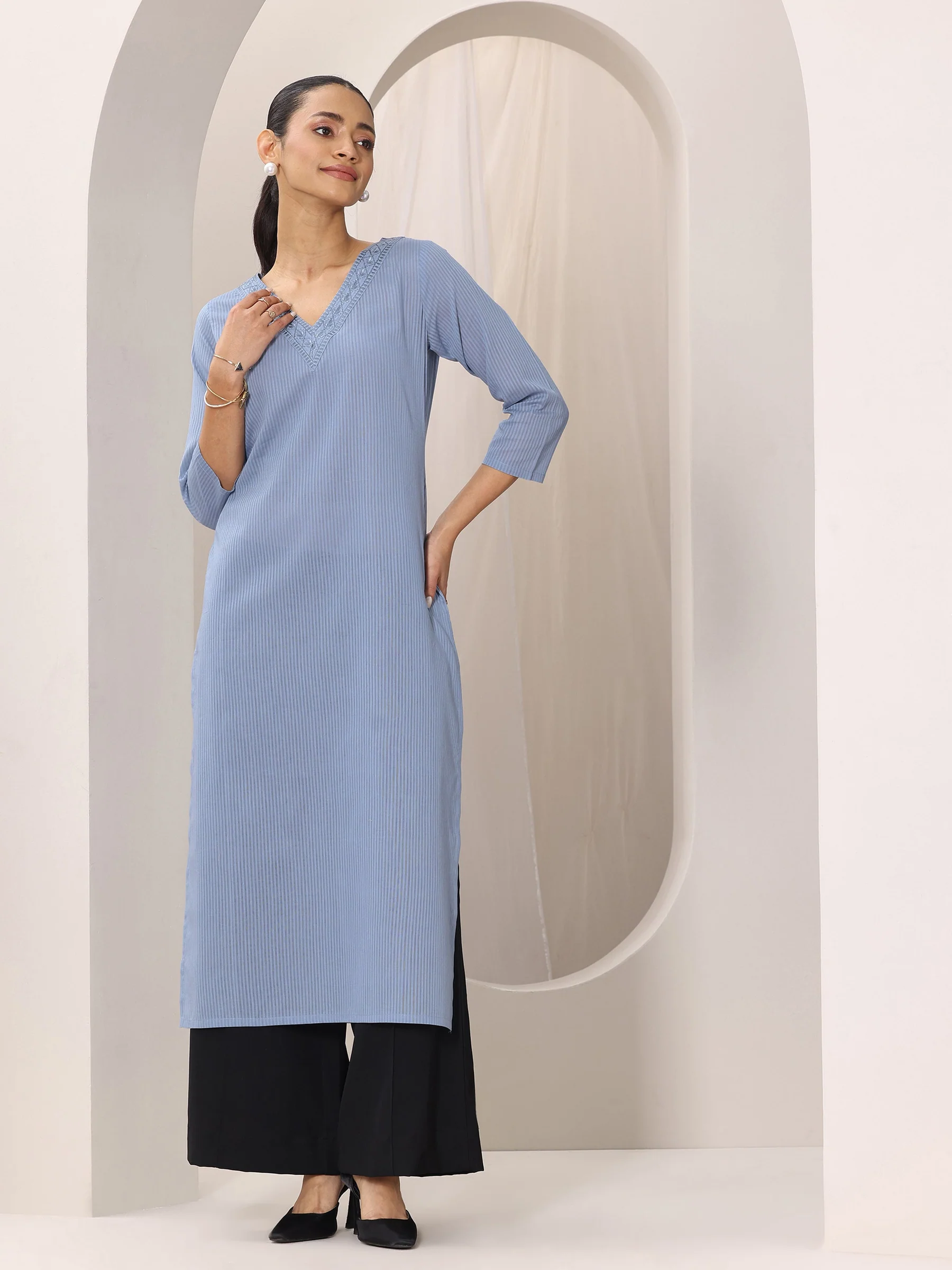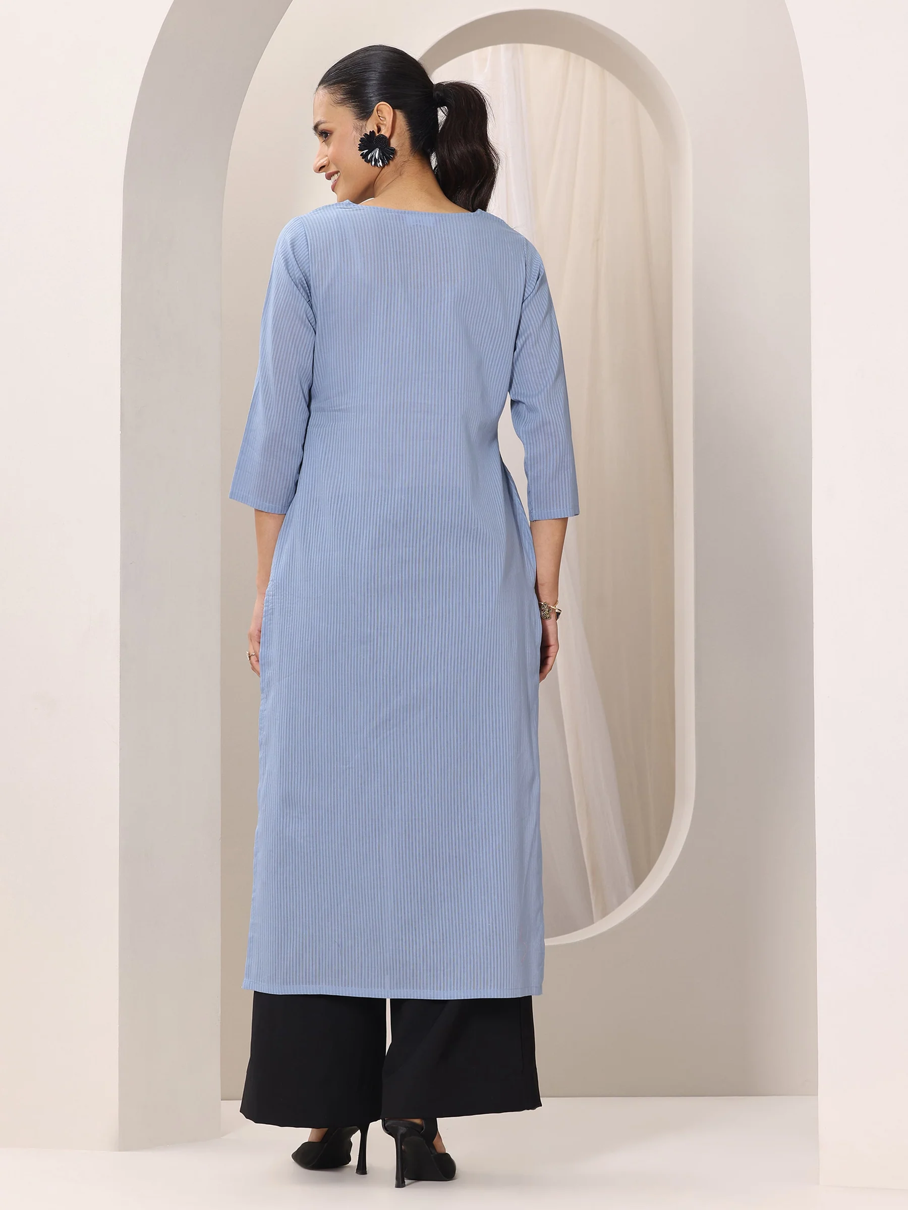 Home Kurtis Long Kurtis Blue Printed Cotton Straight Kurta