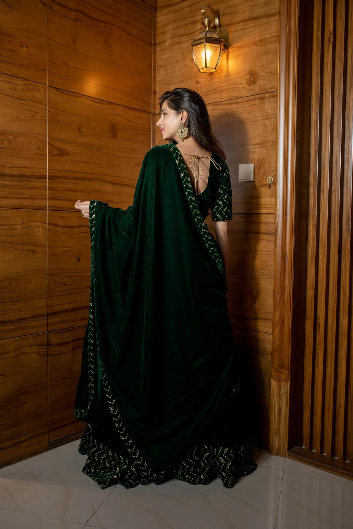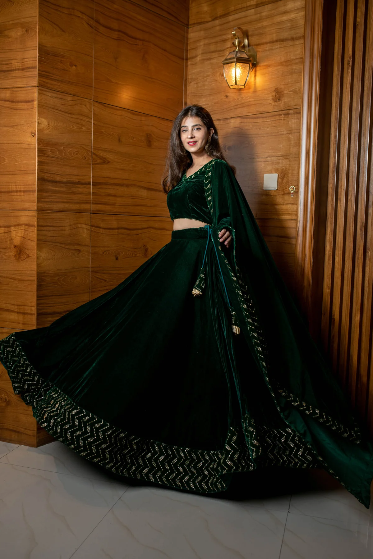 Home Lehenga Bottle Green Sequin And Zari Work Velvet Lehenga