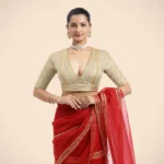 Home Blouse Half-Sleeve Blouse Cream Elbow Sleeves FlexiFi Saree Blouse