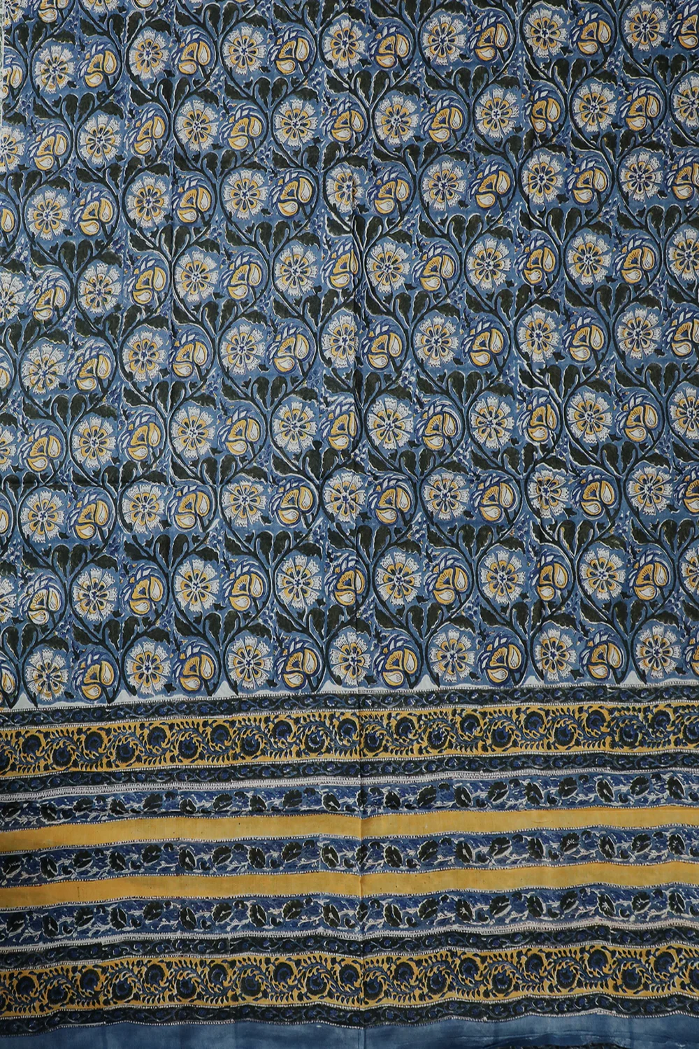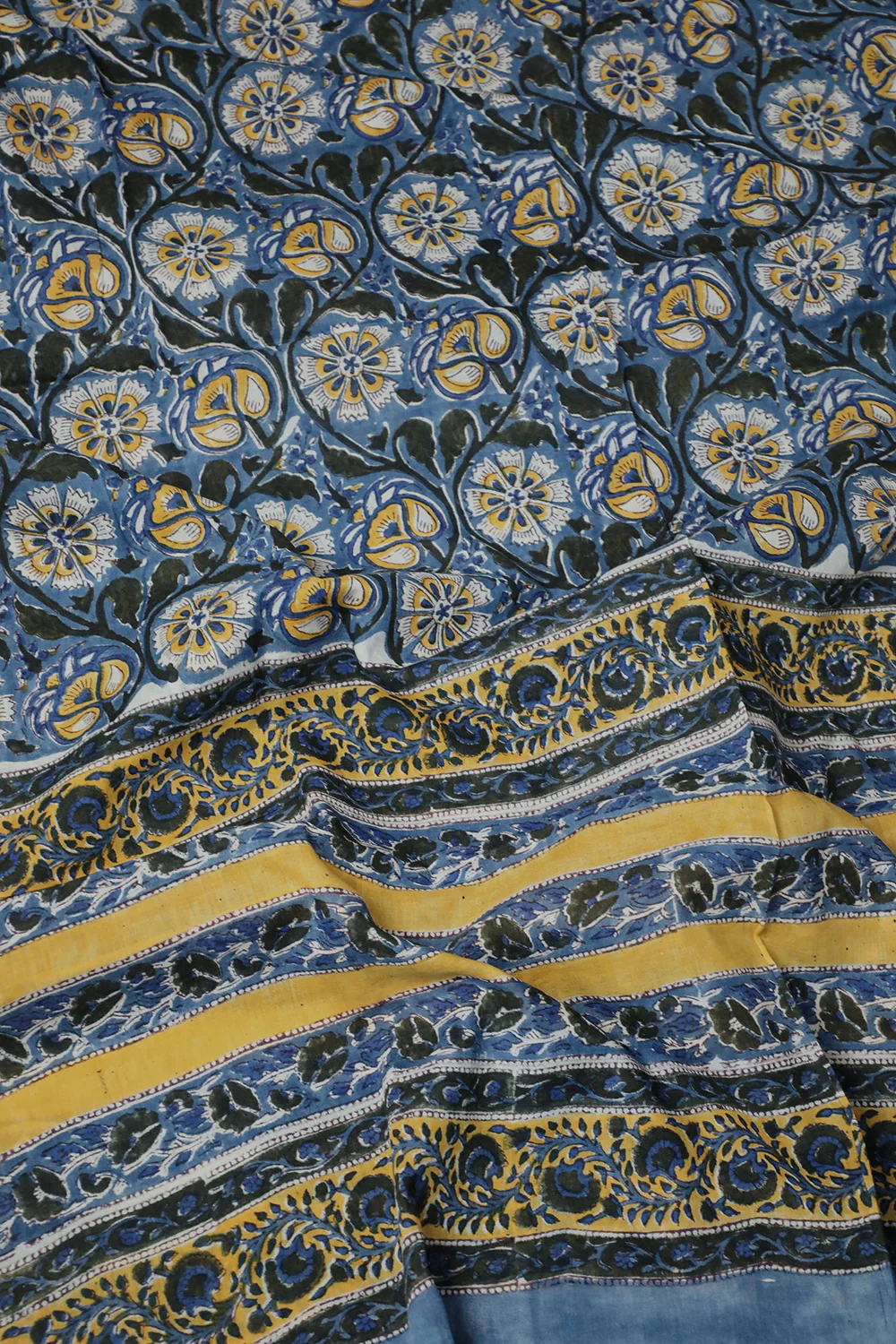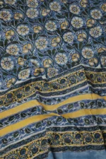 Deep Blue with Florals Block Printed Mul Cotton Dupatta
