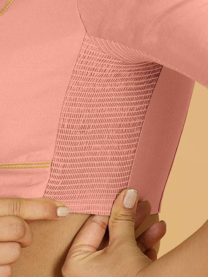 Erum x Rozaana | Elbow Sleeves Saree Blouse in Sea Pink