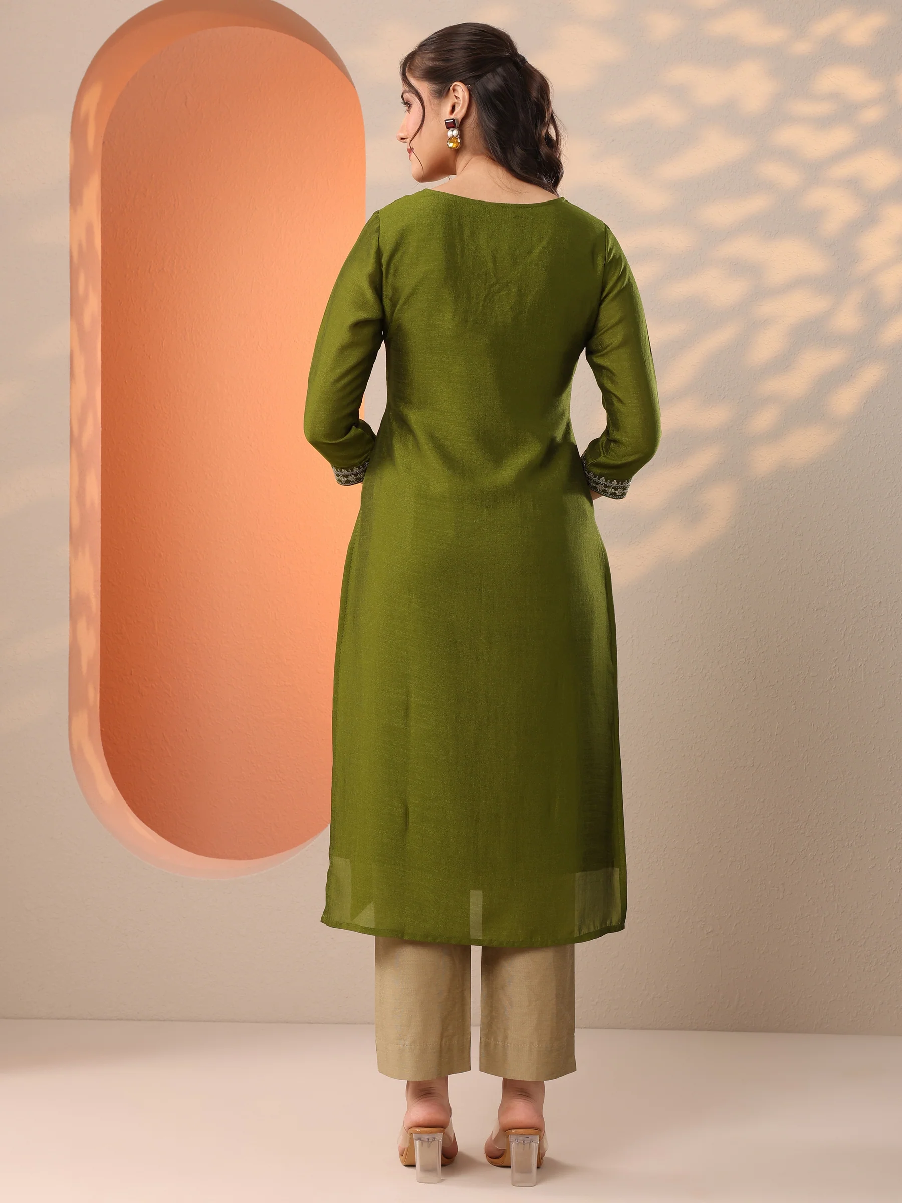 Green Embroidered Silk Blend Straight Kurta