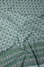 Green Florets on Blue Block Printed Mul Cotton Dupatta
