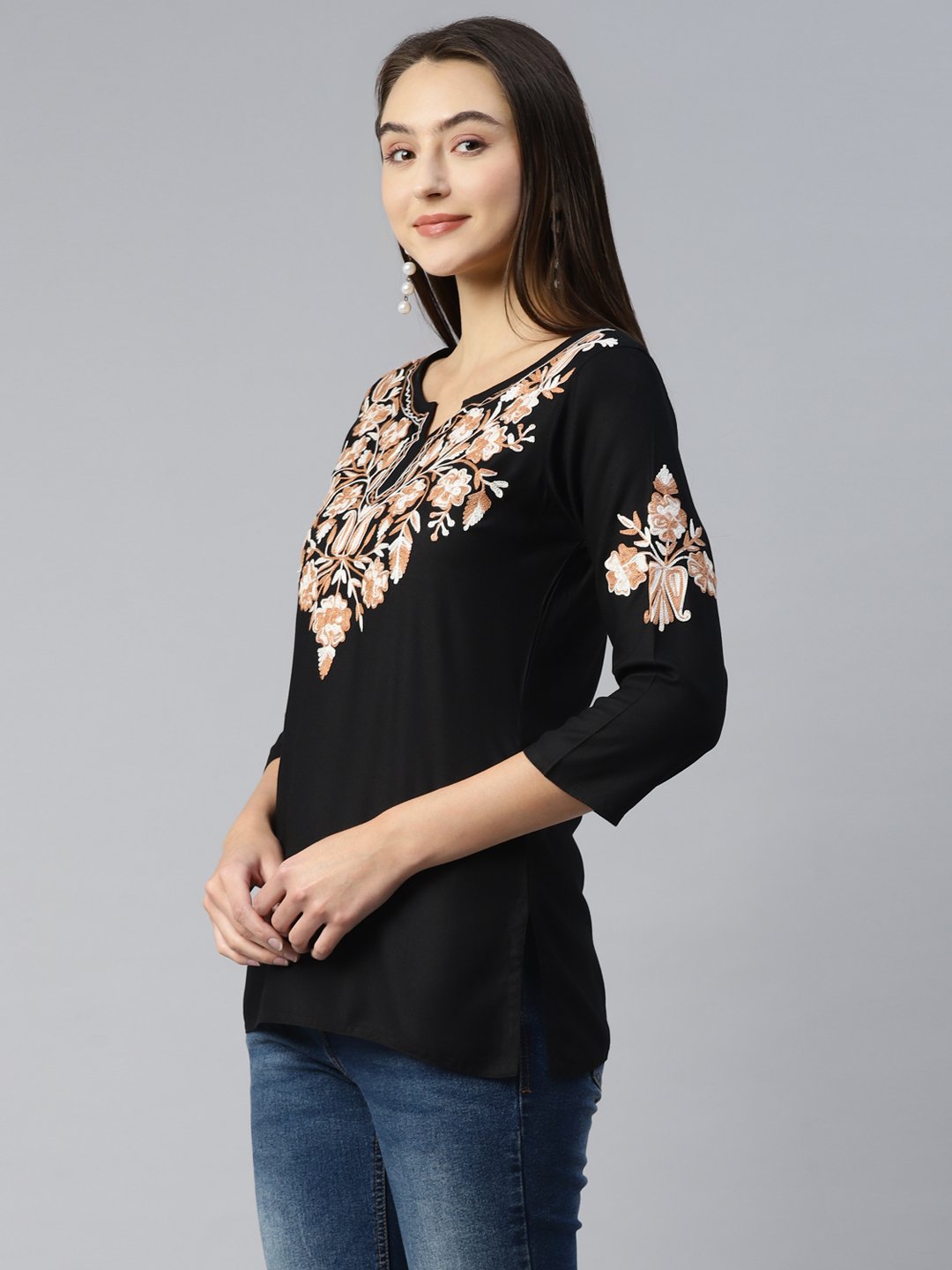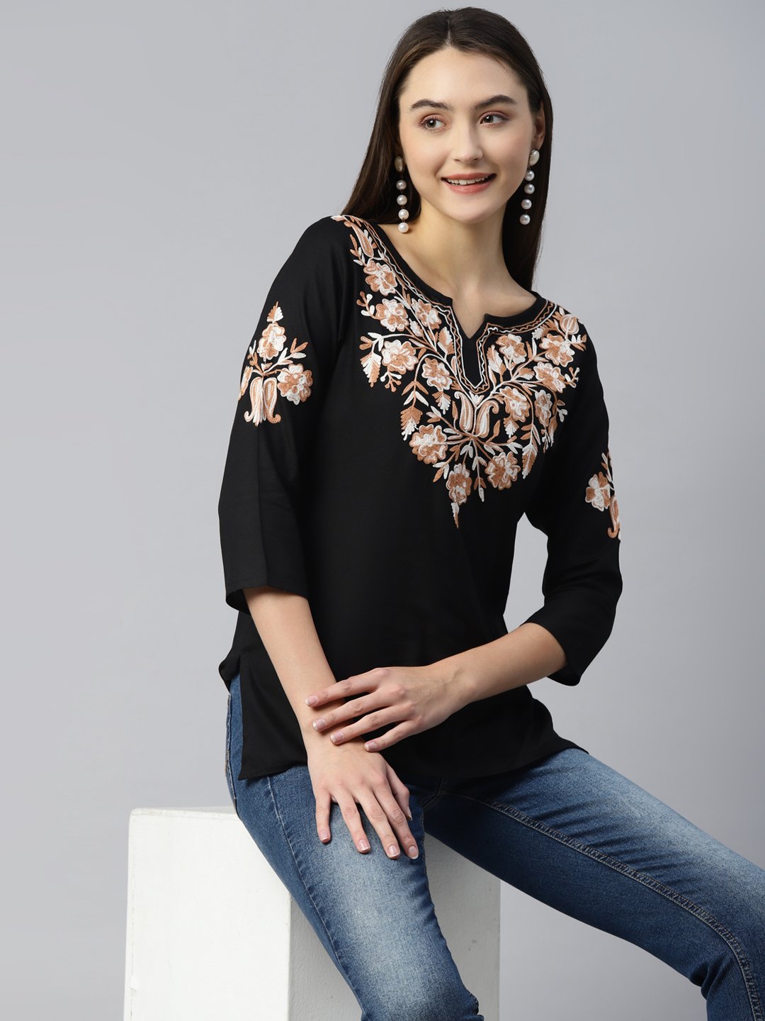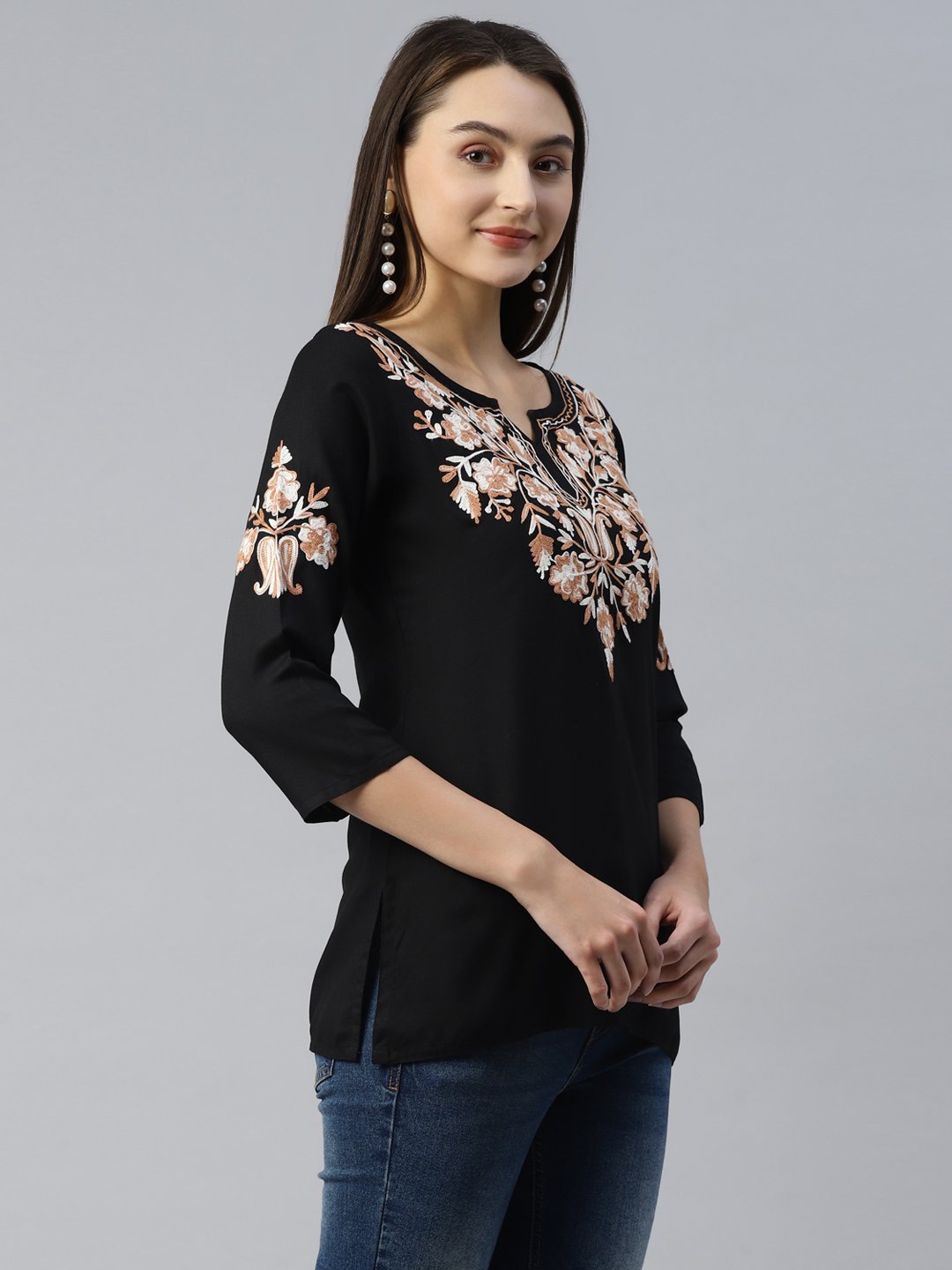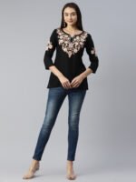 Heer Kashmiri Black Kurti