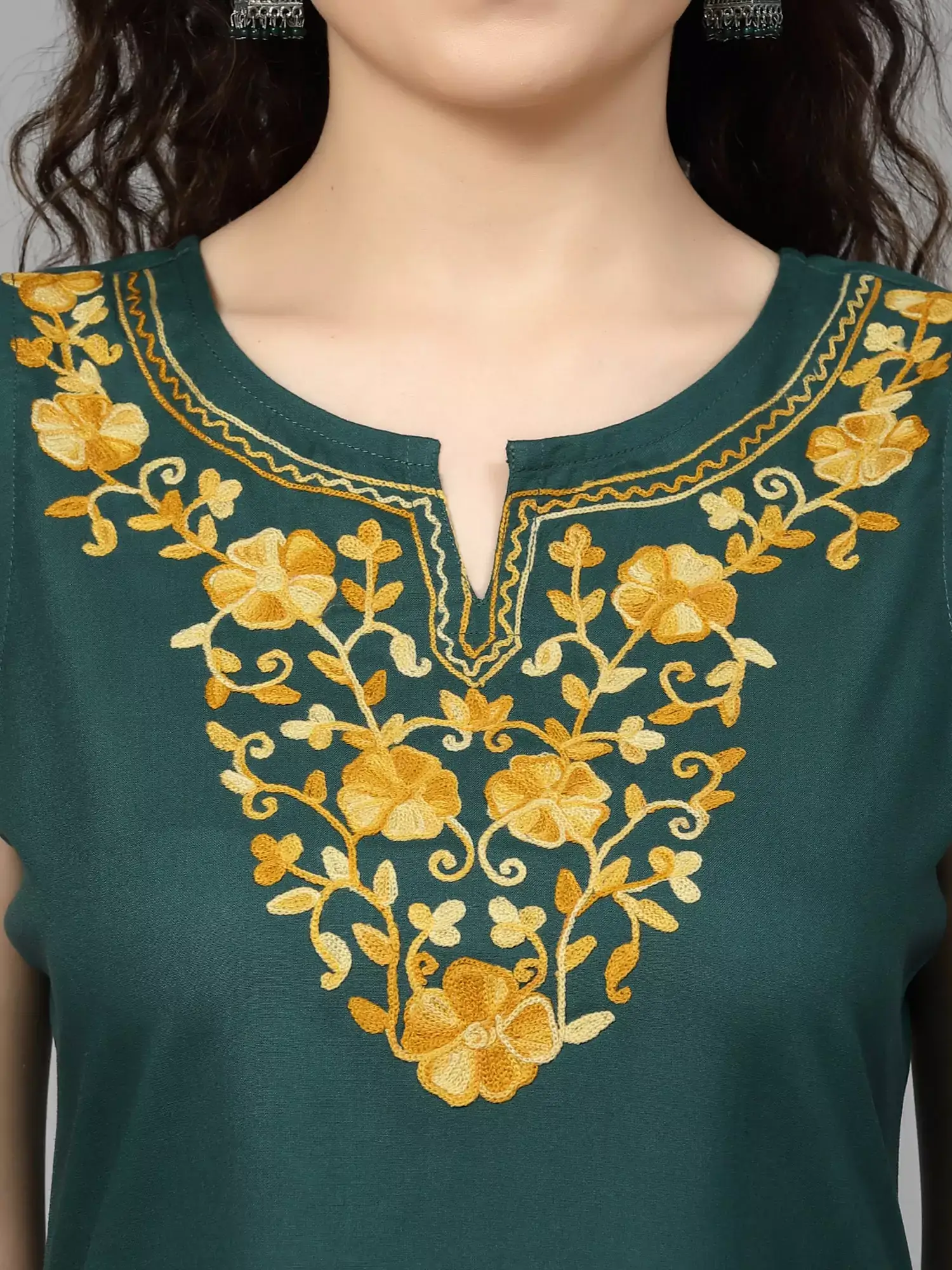Mustard Colored Pashmina Work Kurti