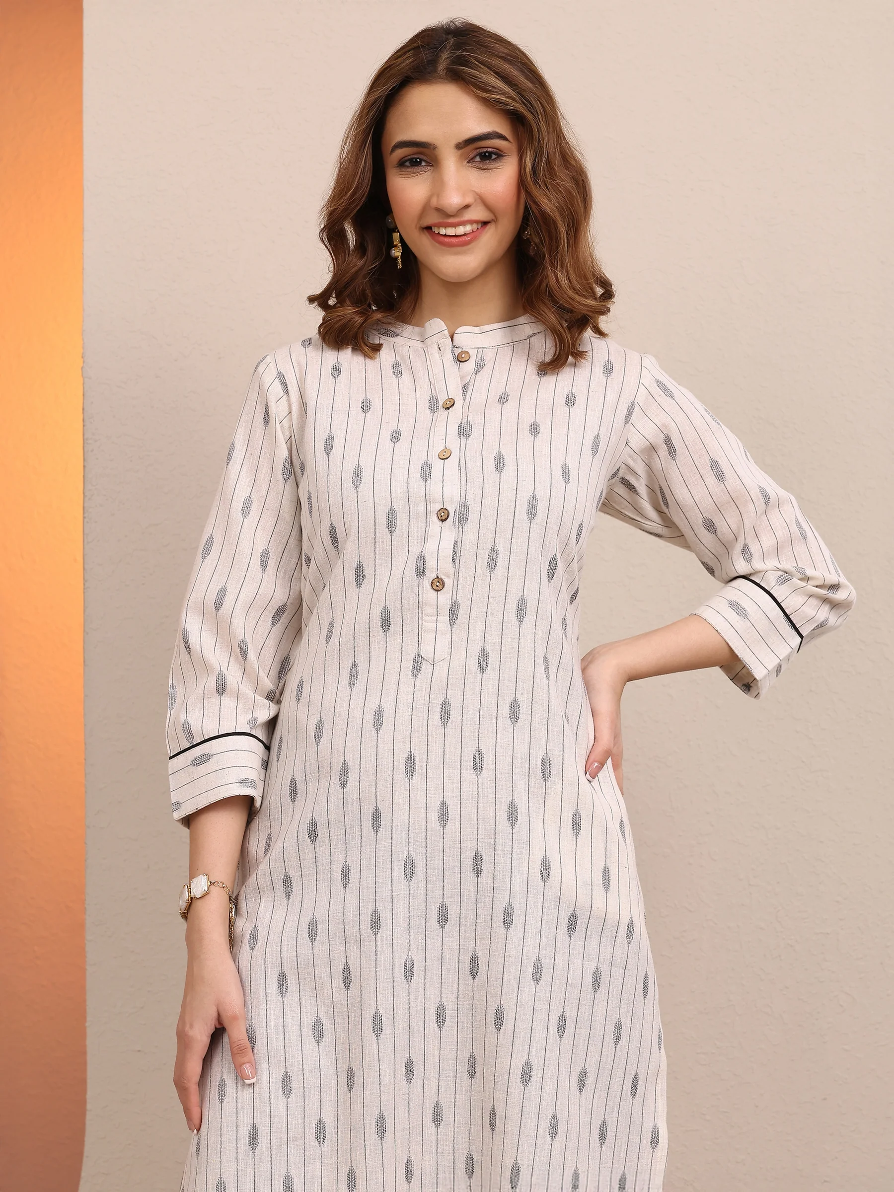 Home Kurtis Long Kurtis Off White Printed Cotton Blend Straight Kurta