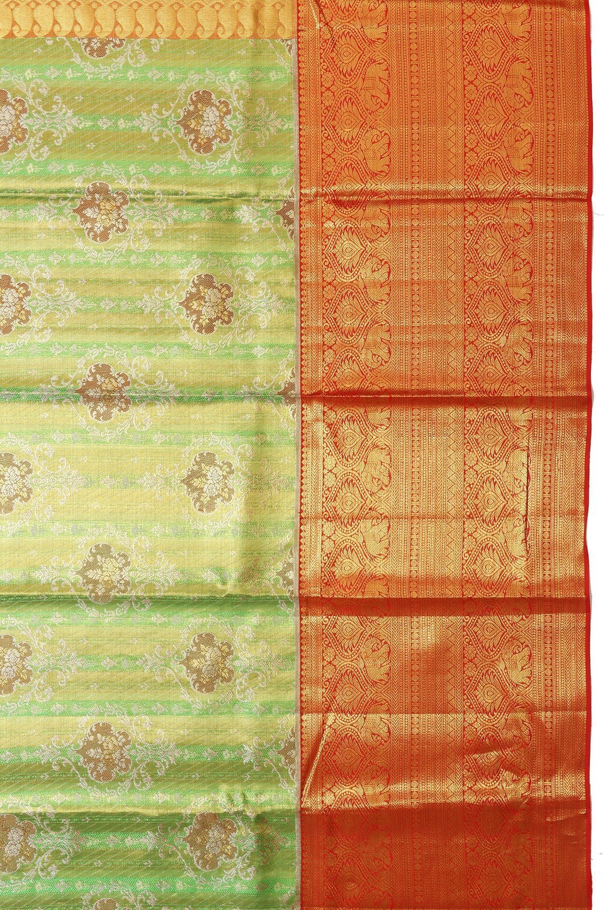 Home Saree Parrot Green Kanchipuram Tissue Silk Saree