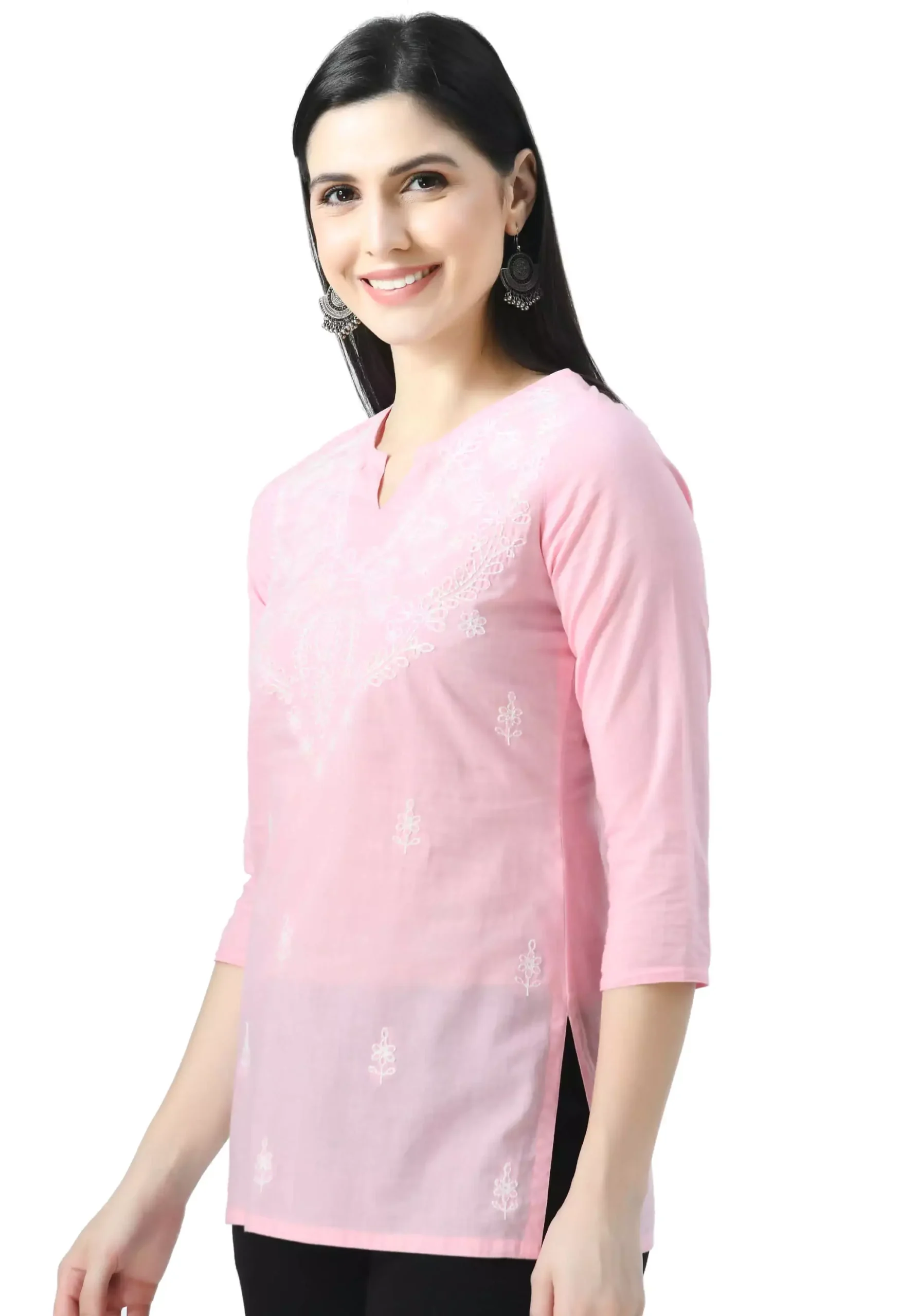 Pink Chikankari Short Kurti