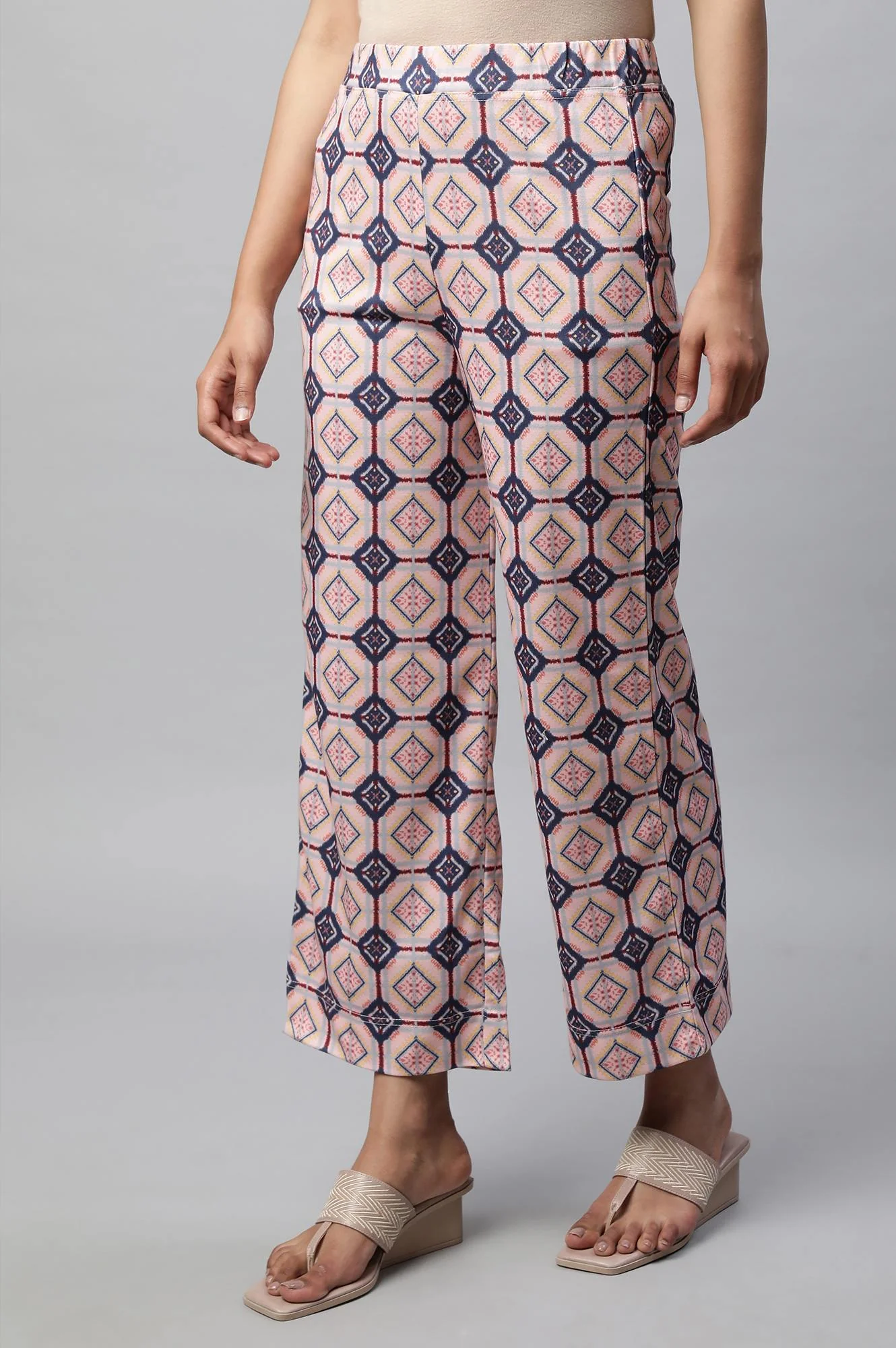 Pink Geometric Printed Straight Fit Palazzo With Elasticated Waist