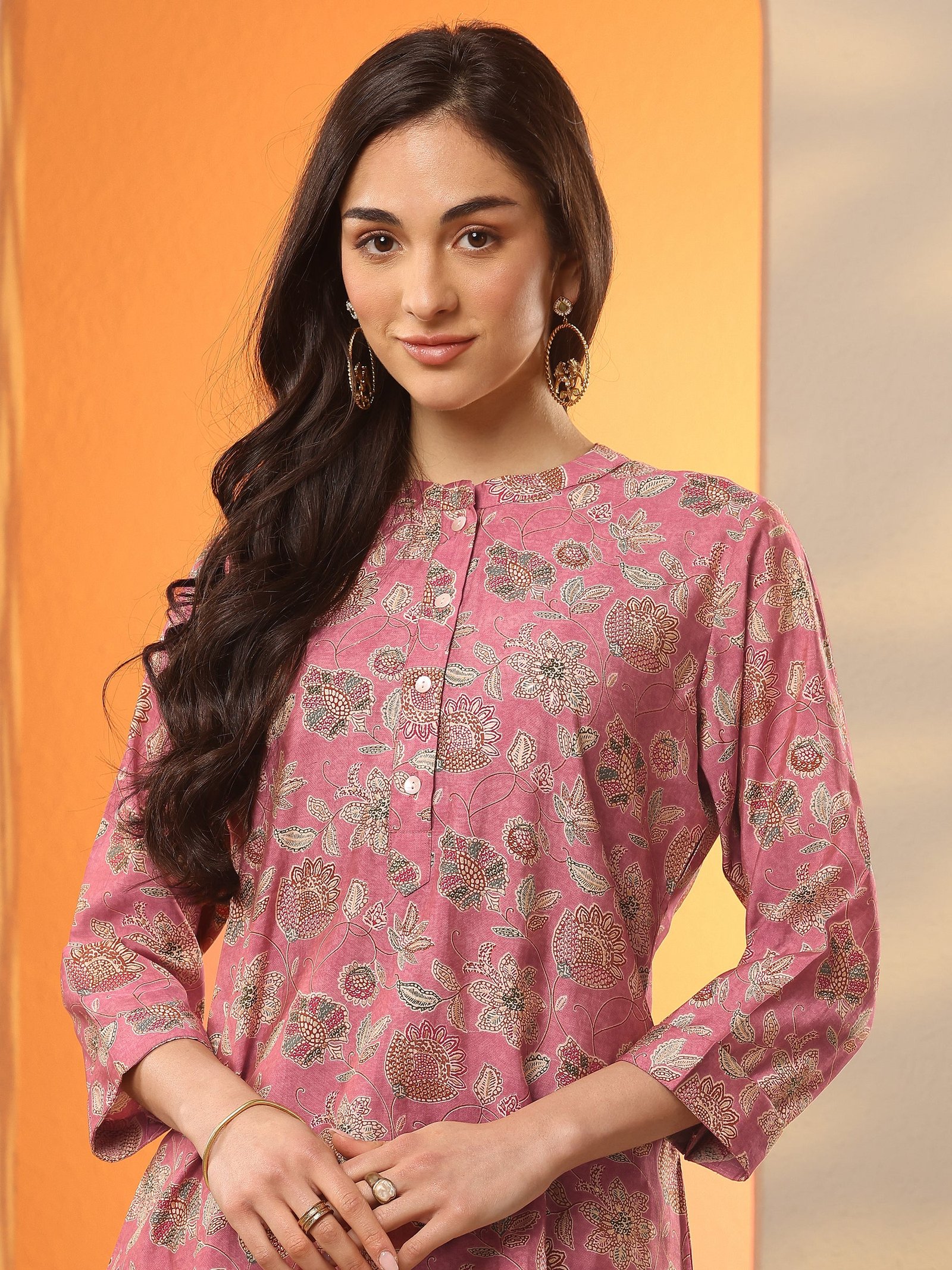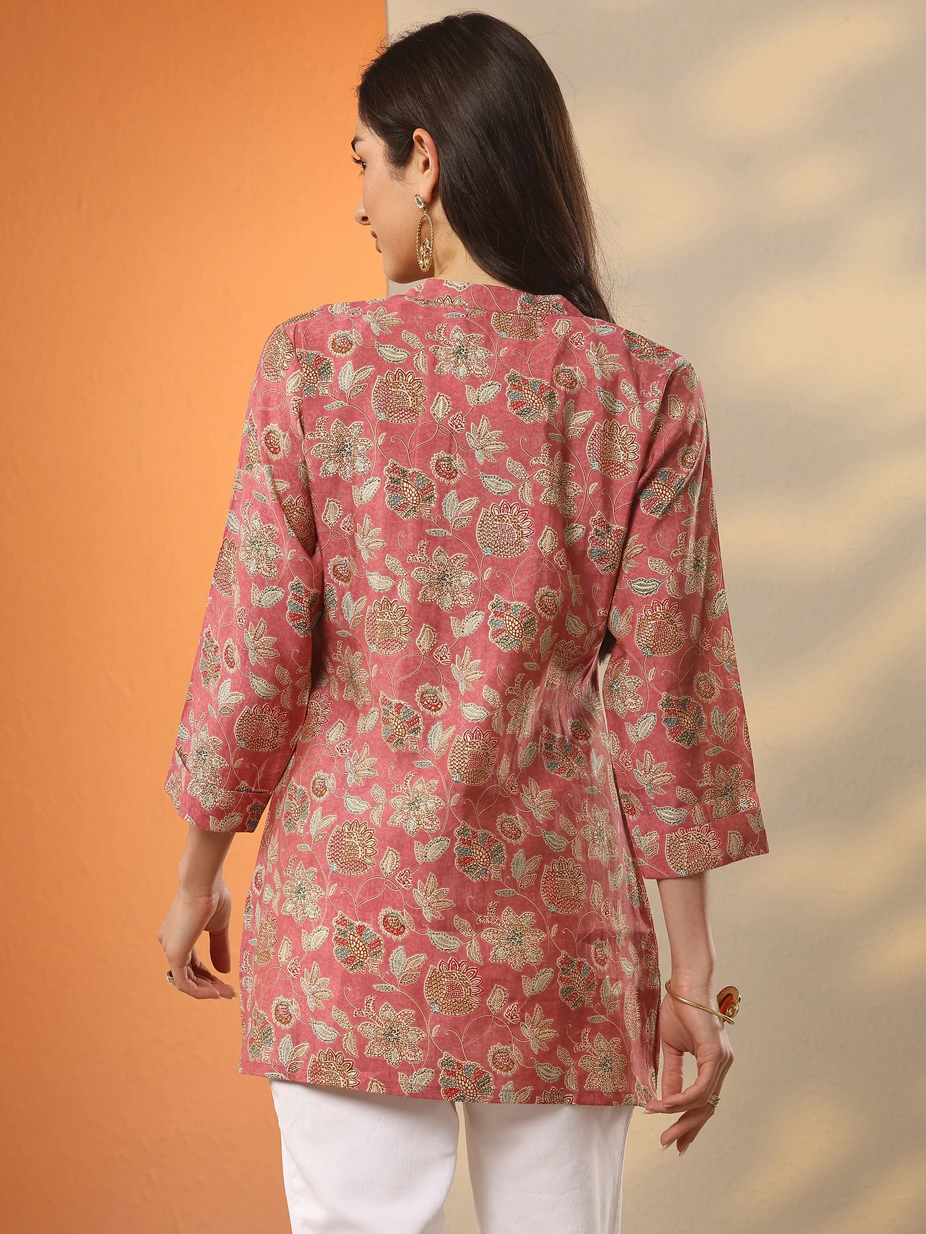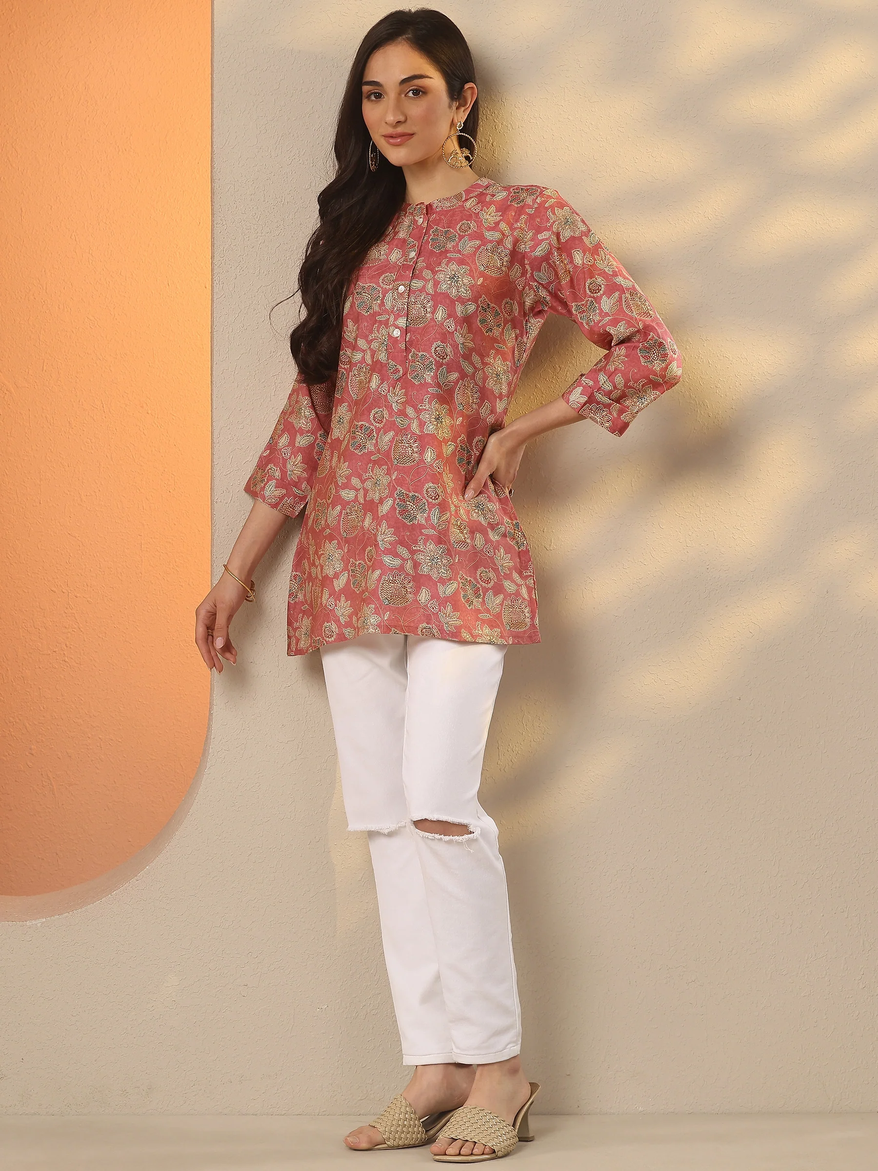 Mustard Printed Silk Blend Anarkali Short Kurti