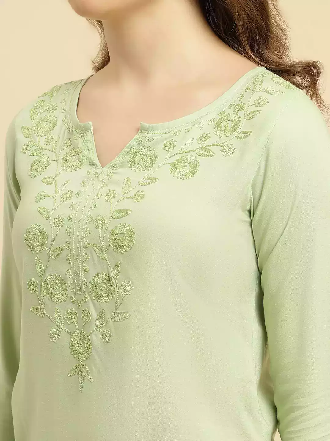 Look ethereal in this Aari work Kurti, freshly crafted in the lightness and comfy feel of cotton.