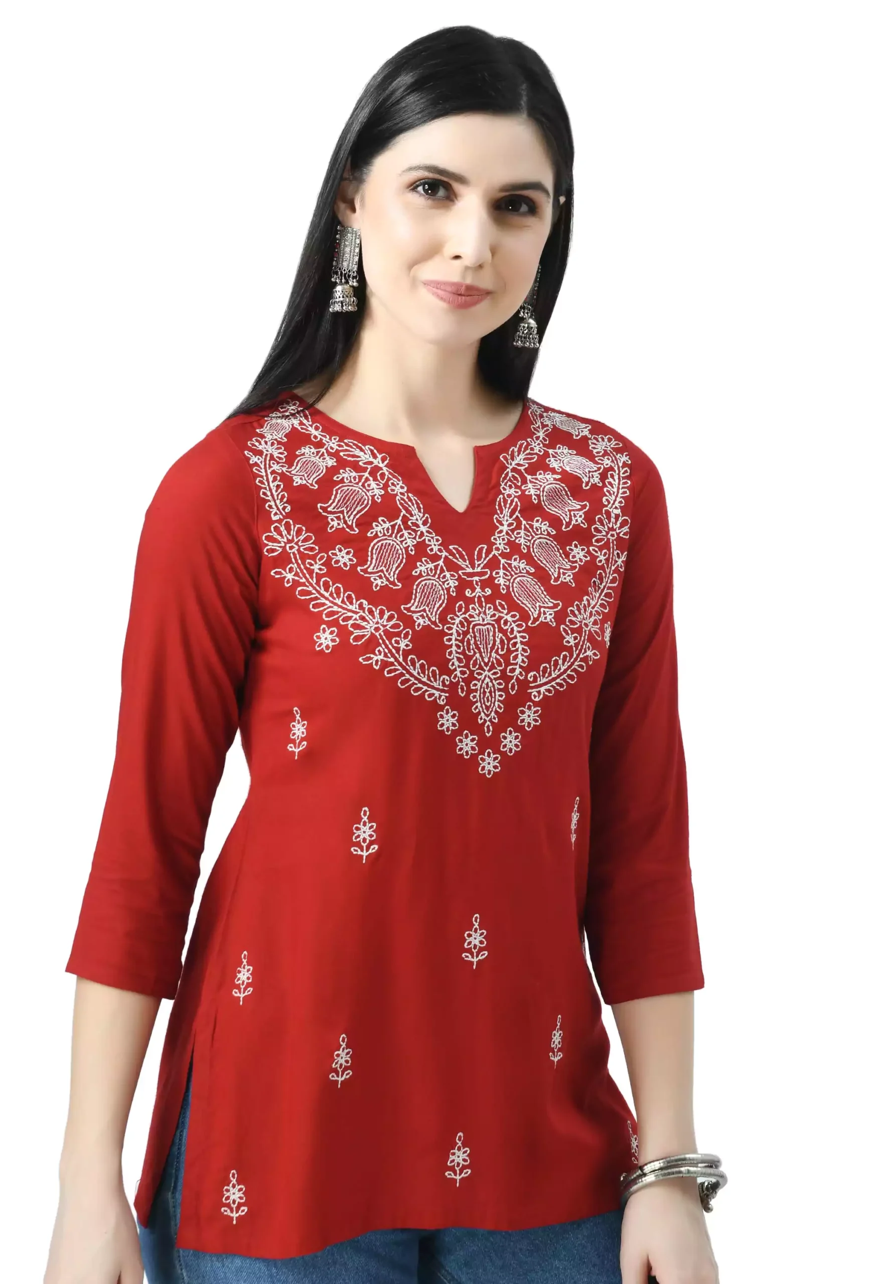 Home Kurtis Short Kurtis Red Chikankari Short Kurti