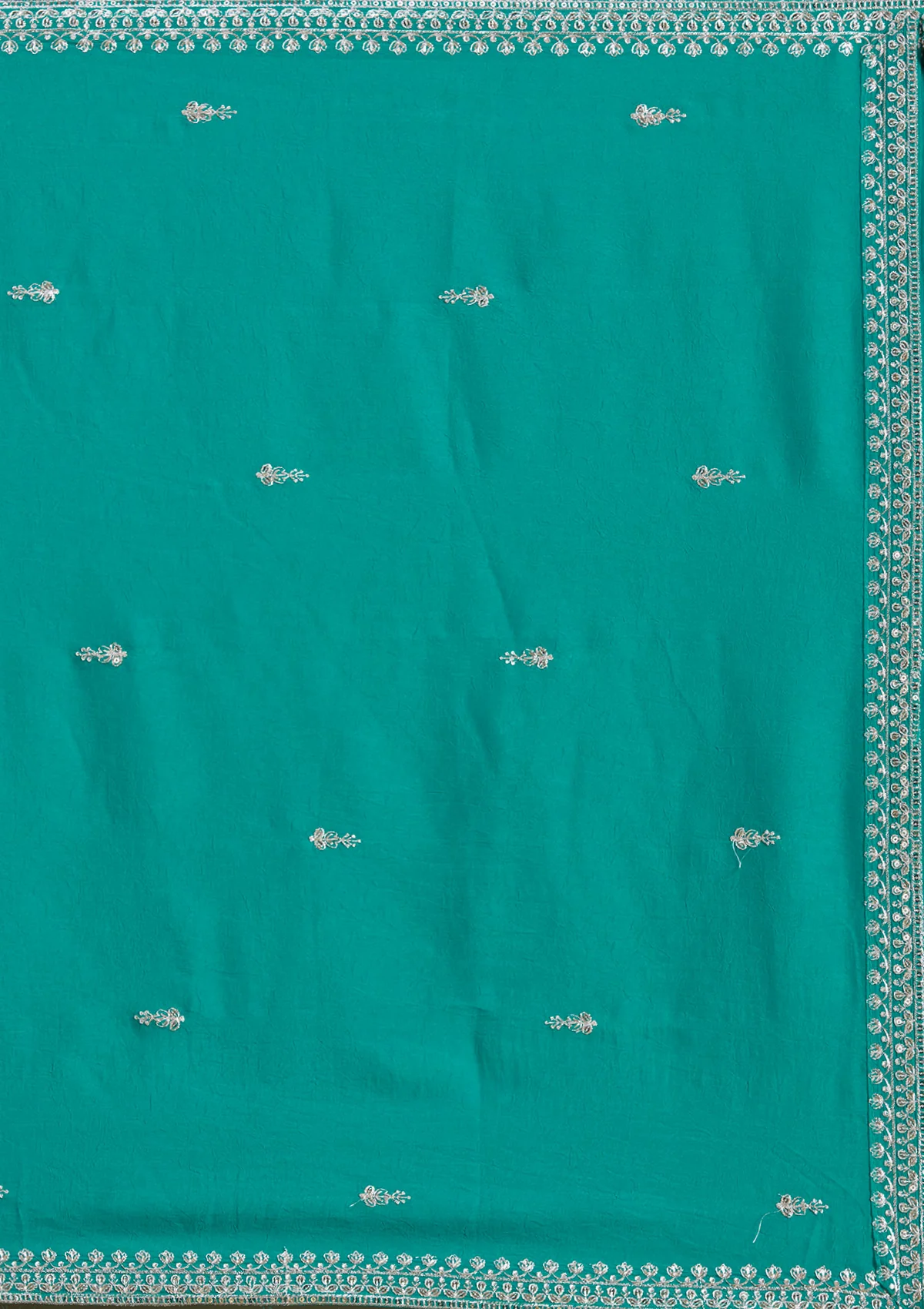 Readymade Lehenga in Soft Raw Silk fabric. The Lehenga is embellished with Zariwork (Silver) embroidery. Accompanied with an Readymade blouse and dupatta. Comes with the Koskii promise of premium quality.