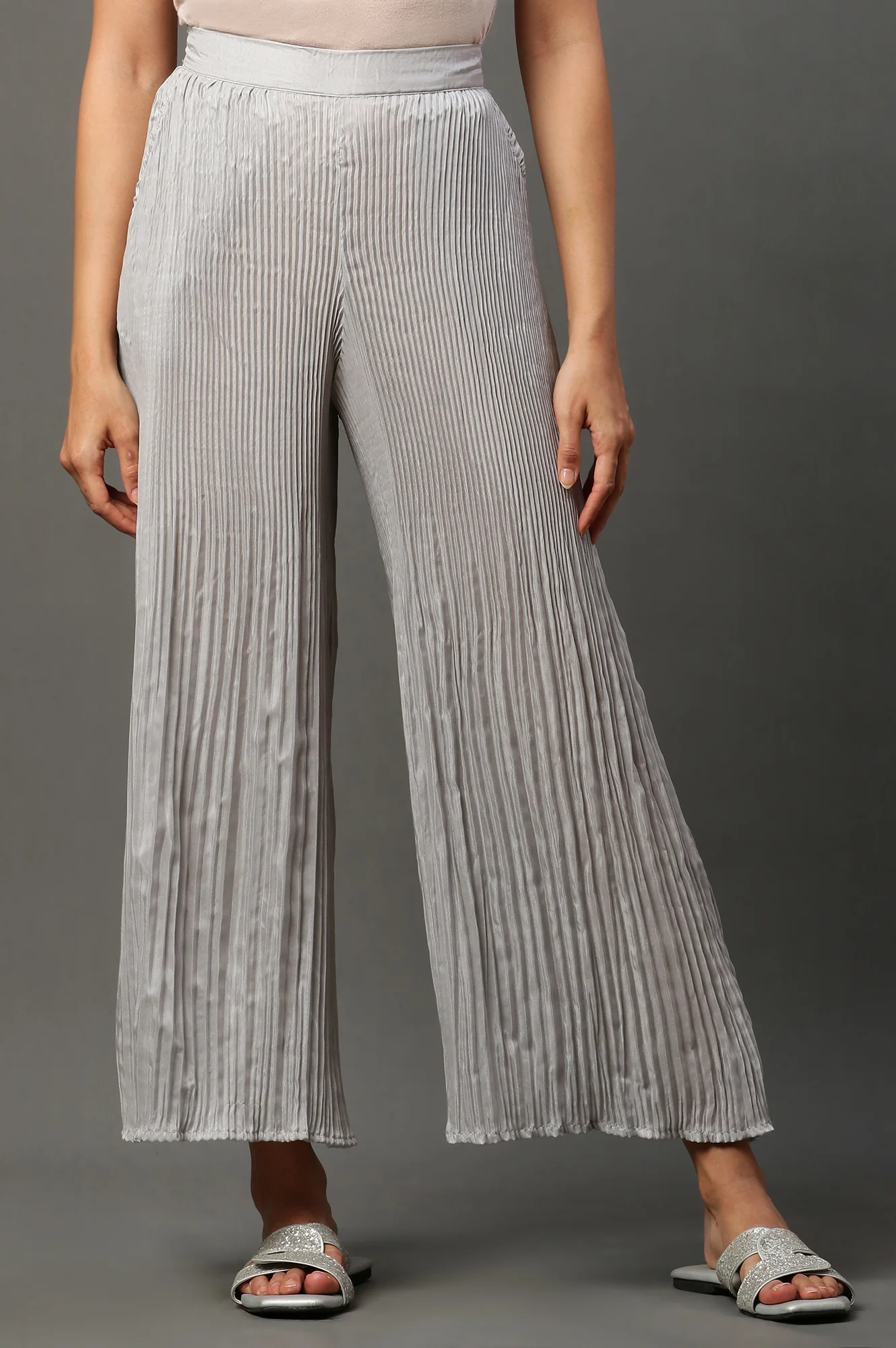 Home Palazzos & Pants Palazzos Silver Solid Flared Woven Sharara With Pleats