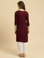 Maroon Colored Multi Embroidered Kurti