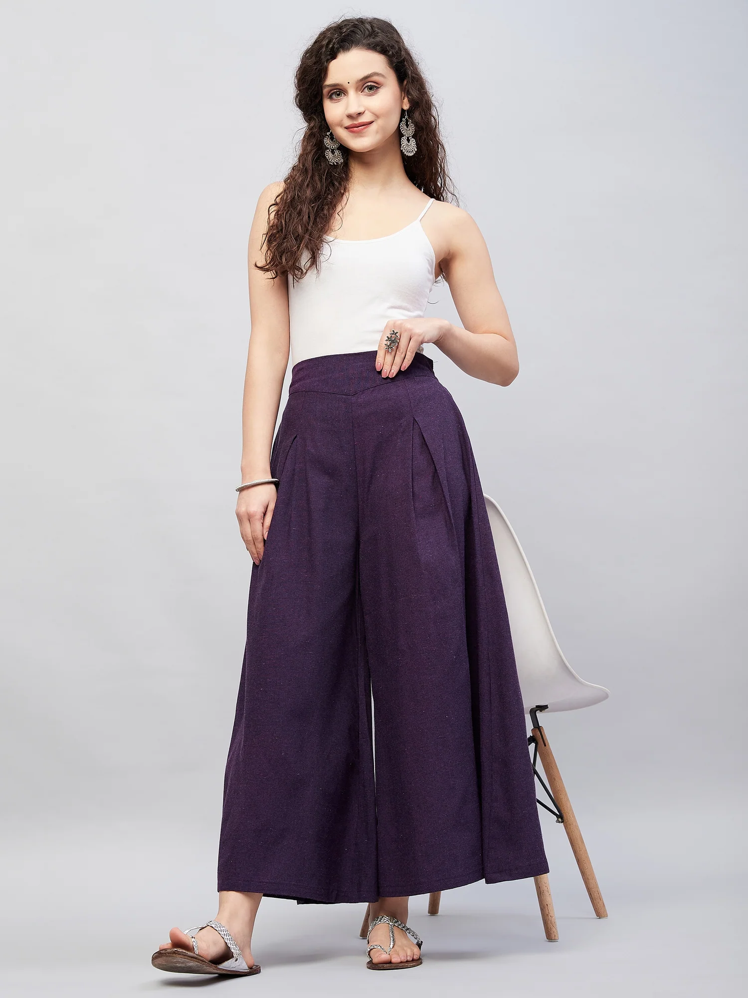 Viscose Rayon Solid White Handloom Palazzo ₹600.00 Incl GST.