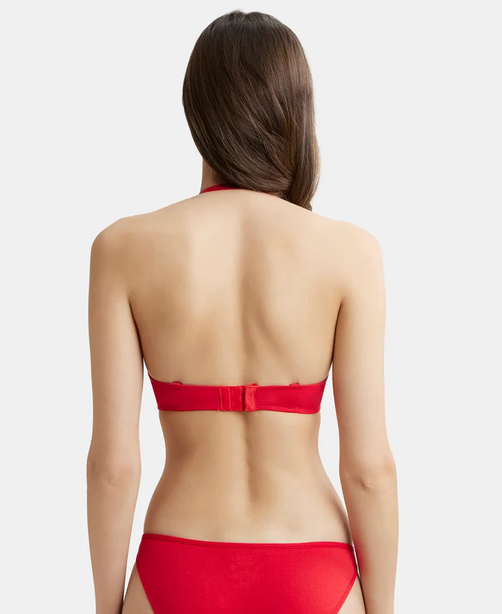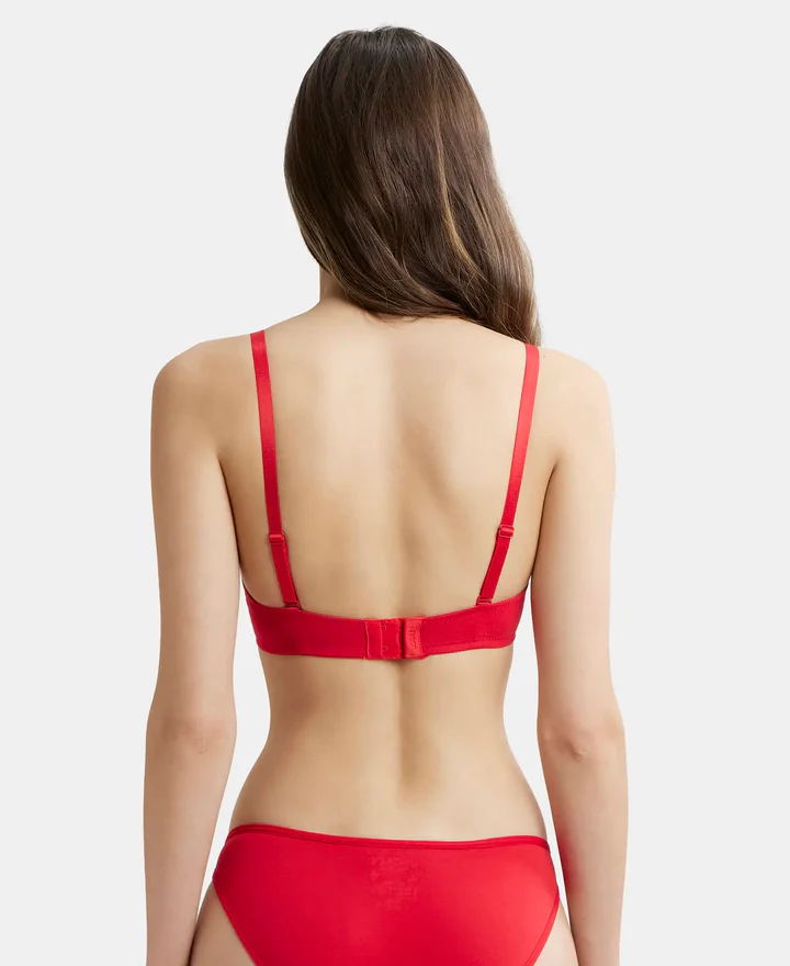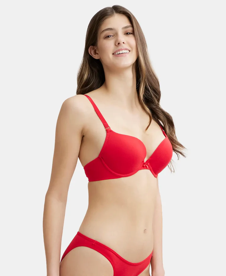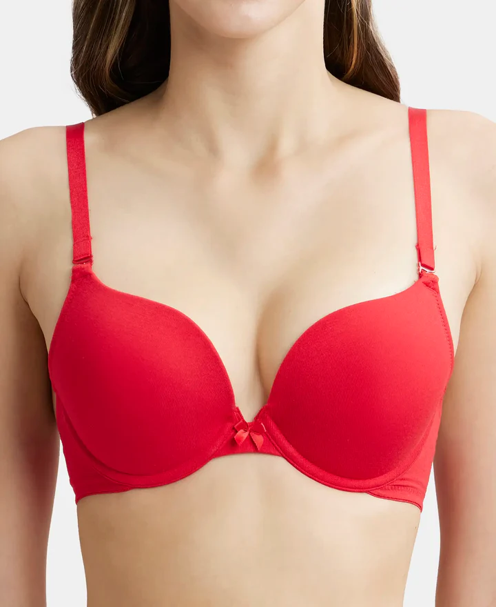 Wired Padded Super Combed Cotton Elastane Stretch Medium Coverage Pushup Bra with Plunge Neck