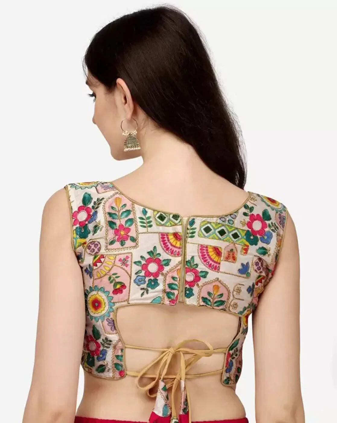 Blue Silk Sleeveless V Neck Benarasi Blouse