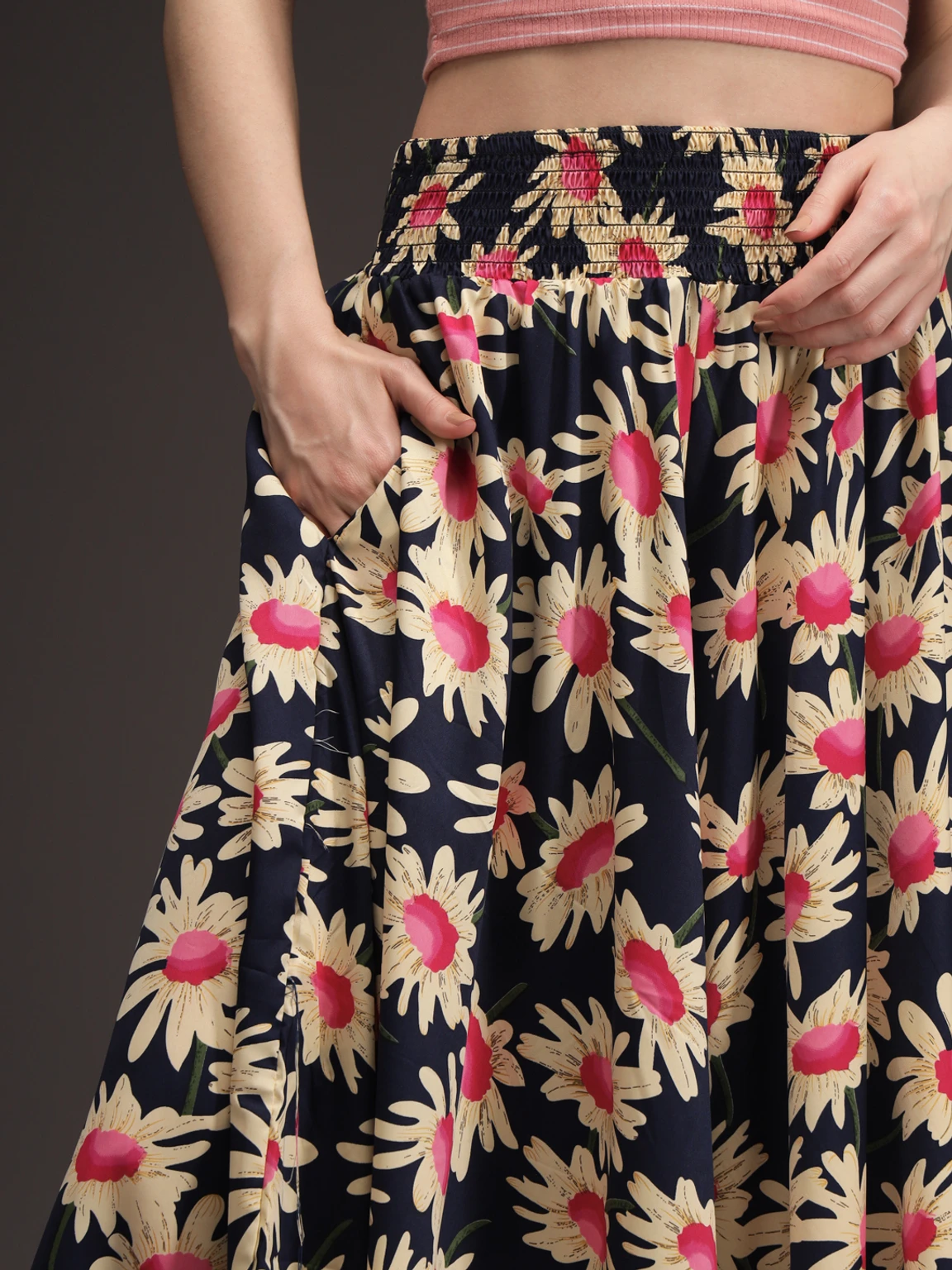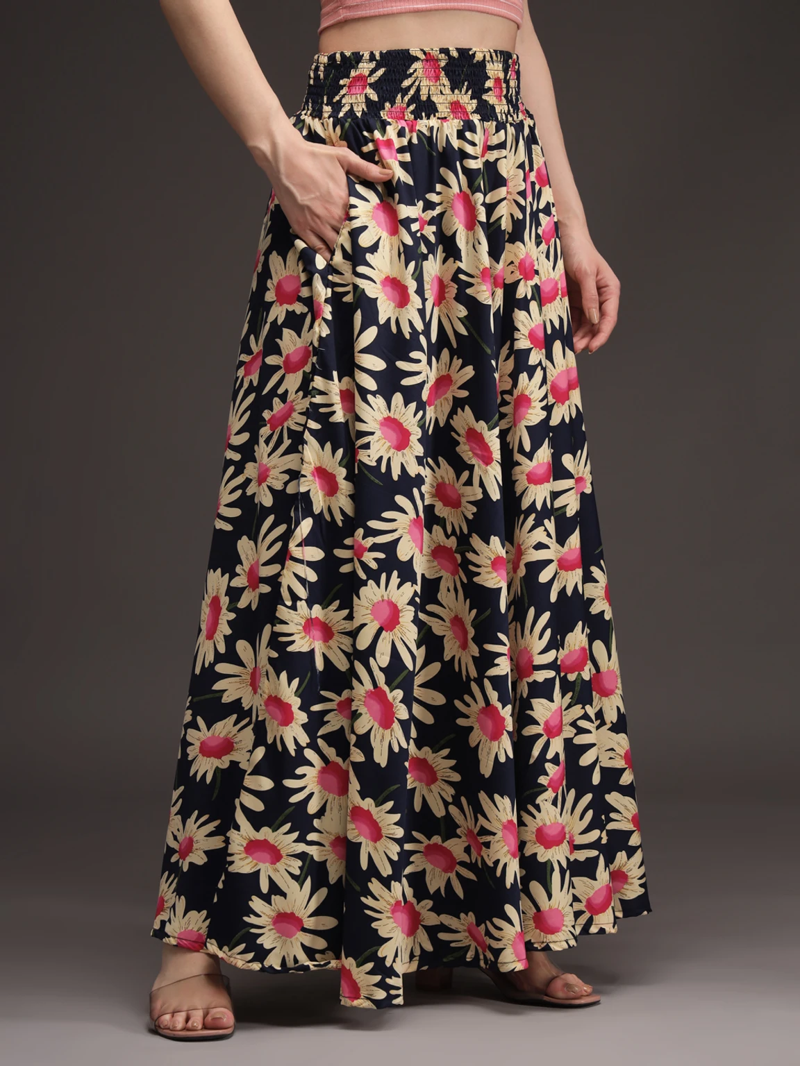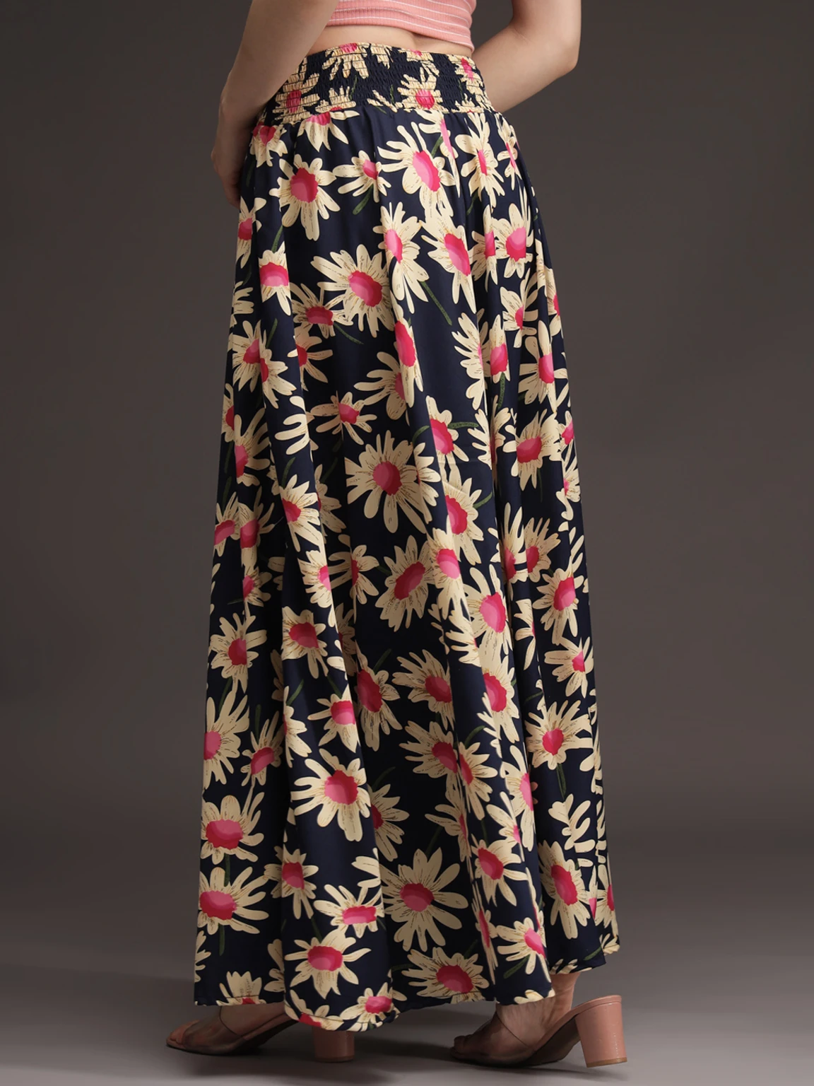 Women Flared Dark Blue, Pink, Yellow Viscose Rayon Palazzos