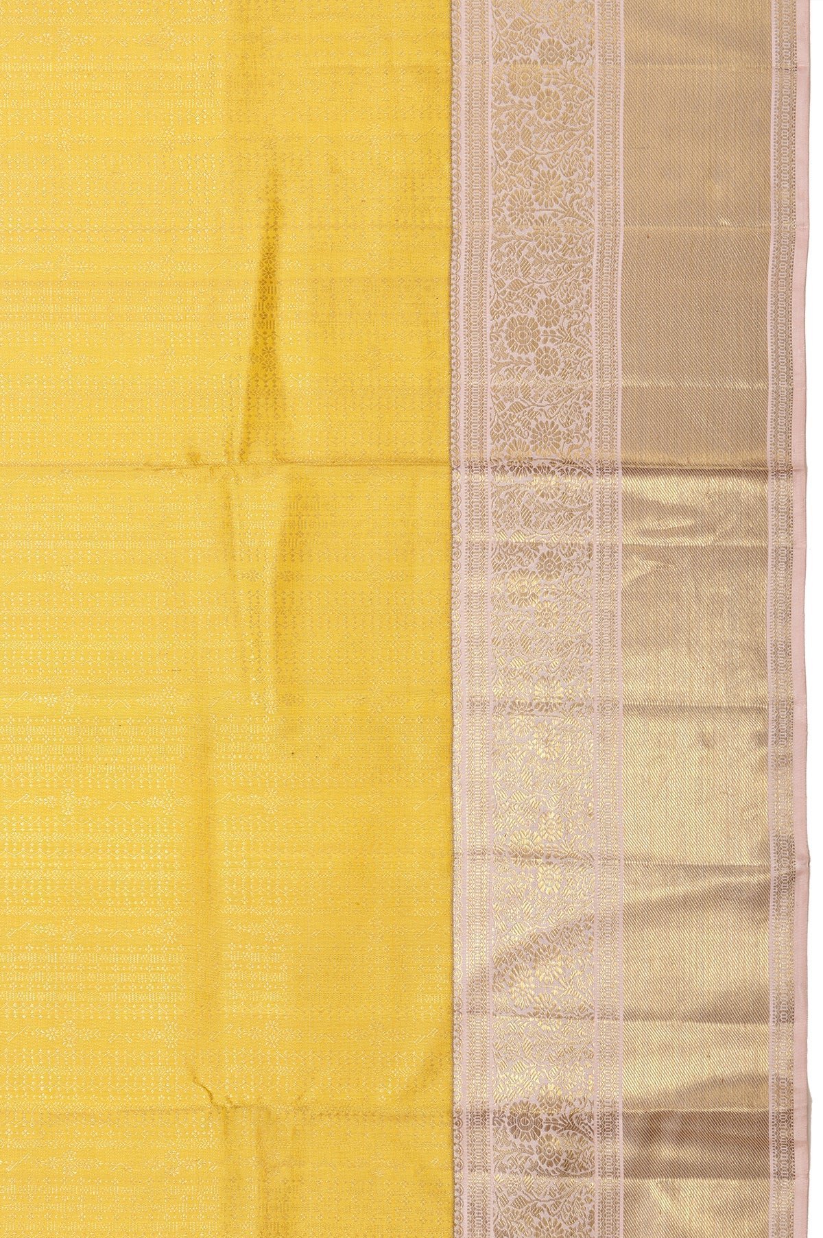 Yellow Kanchipuram Silk Saree with Onion Pink Zari